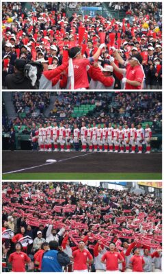 初回に先制点を許す苦しい序盤から、試合後半に逆転すると応援席の熱気は一気に高まり、涙を流して喜ぶ生徒の姿も見られました。早朝よりかけつけて下さいました観客の皆さまのご声援に感謝いたします。