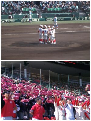試合序盤に8点を先制される苦しい展開にアルプススタンドは静まりましたが、グラウンドの選手が少しずつ反撃を続けた結果、大逆転を成し遂げてくれました。最後まであきらめずに、冷静に自分たちを信じて頑張れば、叶わないことはない。「やろうと思えばできる。できないことはないはずです」のお言葉をみんなの前で体現してくれました。これは野球部と一体となって応援している本校生徒のみならず、また卒業生や学園に関わる方々を越えた、多くの方々へ届くメッセージとなってほしいと願っています。