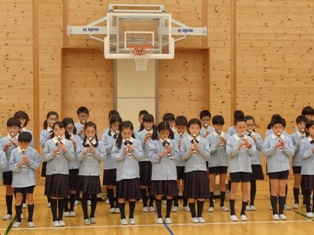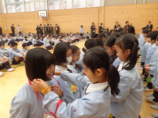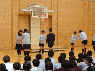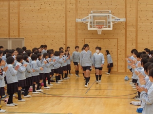 その他 22.児童会集会「6年生を送る会」 2015年3月16日 2015年3月16日 6年生の卒業まであと1週間となりました。今年度最後の児童会集会は、5年生が中心となり「6年生を送る会」をしました。各学年が6年生に向けて贈り物や歌・言葉などのプレゼントをし、6年生の児童たちからは笑みがこぼれました。