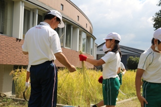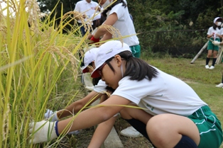6月に校内で植えた稲が実り、稲刈りを行いました。中がしっかり詰まったお米を、楽しく収穫することができました。
