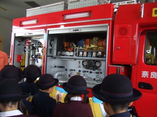 その他 59.香芝消防署見学(3年生) 2015年11月26日 2015年11月26日 3年生が、香芝消防署に見学に行きました。消防隊員の方から、消防車の種類による設備の違いや、救急車の内装について教えていただきました。