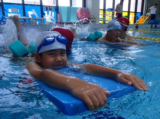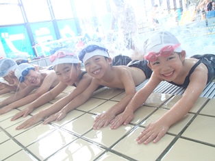 水泳教室(1~3年生)を実施しました。児童は楽しみながら泳ぎ方を身につけ、気持ちよさそうに泳いでいました。