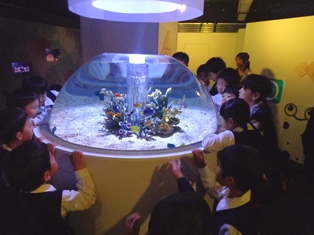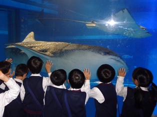 その他 127.秋の遠足(1年生) 2016年10月27日 2016年10月27日 1年生は10月27日に海遊館に行きました。 午前中は「海遊館アカデミー」に参加し、ジンベエザメについて学習しました。午後は海遊館内を見学しました。 児童は、ジンベエザメの体長や歯の数に驚きながら、興味津々で飼育員の方の話を聞いていました。好きな生き物を見つけると「先生、見てみて!」と目を輝かせていました。 いろいろな海の生き物を見たり触ったりして楽しく学ぶ一日となりました。