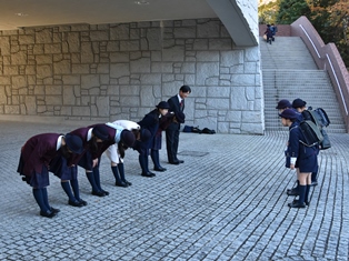 その他 146.あいさつ運動 2016年12月9日 2016年12月9日 12月5日(月)~9日(金)に、代表委員会と風紀委員会が協力して、あいさつ運動を行いました。委員会の児童は登校してきた児童に元気よくあいさつし、登校してきた児童もそれに応えてしっかりあいさつを返していました。