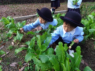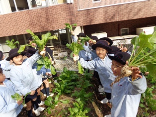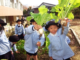 その他 150.カブの収穫(1年生) 2016年12月17日 2016年12月17日 1年生がカブを収穫しました。児童たちは楽しそうにカブを引き抜き、たくさん採れたことに喜んでいました。児童たちは収穫したカブを家に持ち帰りました。