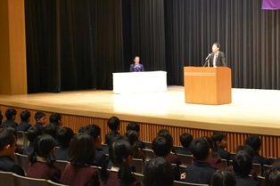 生活安全部主任の先生からは、通学マナーを向上させよう、また優しさや思いやりを大切にしようという話がありました。