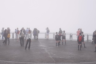 ブルーマウンテンズの雄大な自然と、スリーシスターズと呼ばれる岩を展望できるはずのエコーポイントに立ち寄りましたが、霧で真っ白でした。