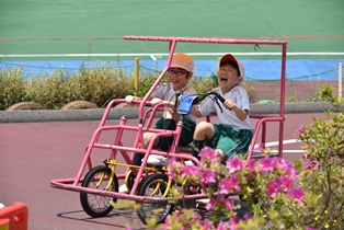 児童たちは数多くの自転車や乗り物に乗り、とても楽しんでいました。