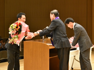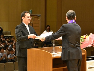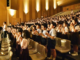 行事 190.6月感謝祭・永年勤続表彰 2017年6月13日 2018年4月14日 6月13日(火)に6月の感謝祭と永年勤続表彰を実施しました。読経の後、理事長先生から本校に長きにわたって勤務されている先生方一人一人に賞状と花束が贈られました。 理事長先生のお諭し 御真言・御宝号の様子 永年勤続表彰の様子① 永年勤続表彰の様子② 永年勤続表彰の様子③ 永年勤続者を代表して謝辞を述べている表彰者