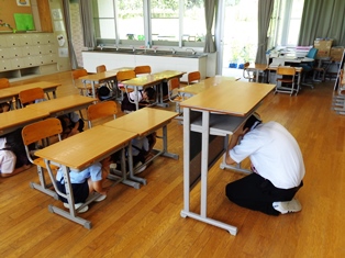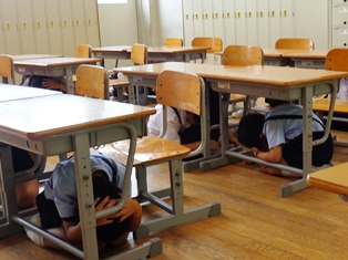 その他 198.ナラ・シェイクアウト 2017年7月10日 2017年7月10日 今年も「ナラ・シェイクアウト(奈良県いっせい地震行動訓練)」に参加しました。7月10日(月)10時30分から校内放送を合図に一斉に児童生徒が机の下に身を隠すという訓練を行いました。あわせて、教室の備蓄品を児童に配付する訓練も行い、内容物の確認をしました。