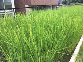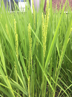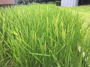 8月4日、4年生が田んぼで育てているイネから穂が出てきました。