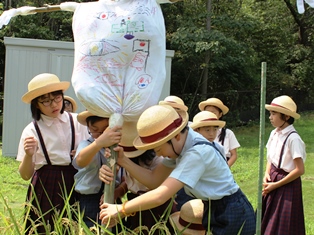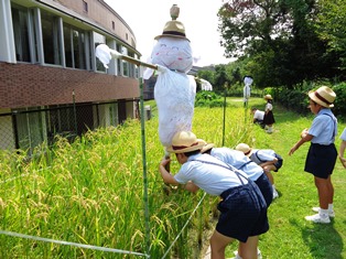 今は、自分たちが大切に育てているイネをかかしが守ってくれています。