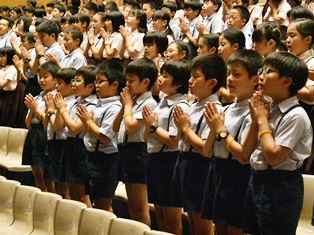校長先生は、児童に「朋友有信」という四字熟語を紹介し、お互いの信頼が友人関係には最も大切であり、同級生だけでなく、下級生・上級生問わず友達を増やし、大切にしていきましょうとの話がありました。
