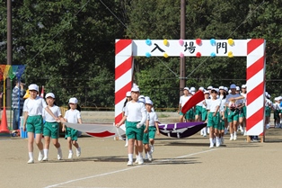 児童会が考えた運動会のスローガンは「つなごう友情の輪~Band together~」で、各色の児童とも、スローガン通りの厚い友情の見られる運動会になりました。