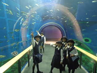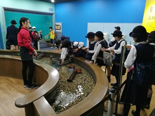 琵琶湖に棲む水生生物を見ることができる水族展示室では、普段見られない生き物の生態を見ることができ、児童は喜んでいました。
