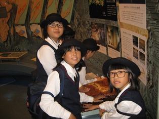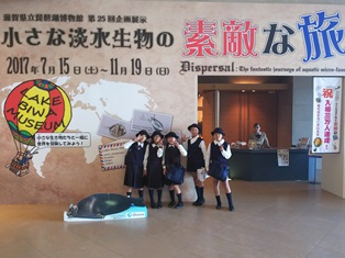 グループに分かれて、琵琶湖博物館で調べ学習をしました。博物館の中には、琵琶湖の環境や、昔の人々の暮らしなどが展示されており、児童は興味津々でメモを取っていました。