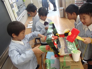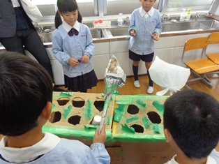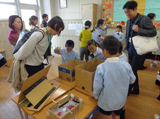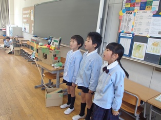 行事 229.秋祭り(2年生) 2017年11月9日 2018年4月4日 11月9日(木)に2年生が秋祭りをしました。 生活の授業で様々なお店をつくり、保護者の皆さんをお客さんとして迎えました。児童たちは、お客さんを楽しませるためにアイデアを出し合い、材料、作り方、遊びのルールなど、それぞれの班で工夫を凝らしていました。昼休みは芝生に出て、親子でお弁当を食べました。 おもちゃとルールの説明 おもちゃで遊ぶ① おもちゃで遊ぶ② おもちゃで遊ぶ③