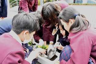 その他 232.人権の花 植栽(5年生) 2017年11月21日 2018年4月4日 11月21日(火)に、5年生が人権の花を植えました。 当日は香芝市の人権擁護委員の方にもお越しいただき、人権の花としてパンジーの苗を全員で植えました。児童たちは、協力することとお互いを尊重し合う大切さについて考え、人権について見つめ直す良い機会になりました。