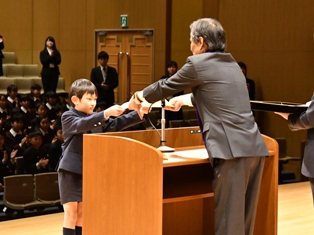 「この1年間、奈良カレッジ小学部の児童達はとても頑張りました。4月からはそれぞれが1つ上の学年に進級します。5年生は最高学年としての自覚を持てるよう、1~4年生は去年より成長できるようしっかり頑張りましょう。4月6日の始業式の日に、スロープでみんなの笑顔を心待ちにしています。」