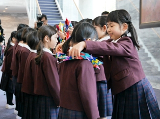 ![]() 2年生から折り鶴の首飾りのプレゼント |