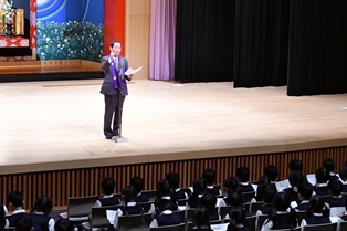 引き続いて行われた5月の感謝祭では、理事長先生から「大谷翔平選手を育てた魔法の81マス」をもとに、自分の目標を実現するためには、課題を意識して努力することが大切だというお諭しがありました。