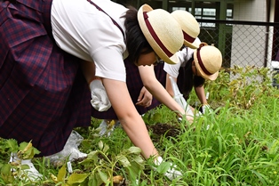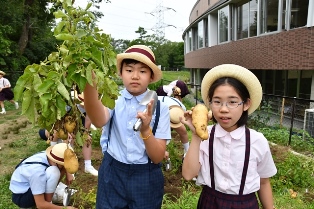 理科の授業で、3月にジャガイモを植え付け、6月14日(木)に収穫をしました。