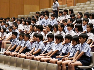 終業式では、校長先生から、「夏休み中は、児童一人一人が自発的に、正しいと思うことを行いましょう。そして、自分自身がより成長するためにはどうしたら良いのかを考え、実行しましょう。夏休みが明けて、2学期に児童の皆さんが元気に登校してくるのを楽しみに待っています。」という話がありました。