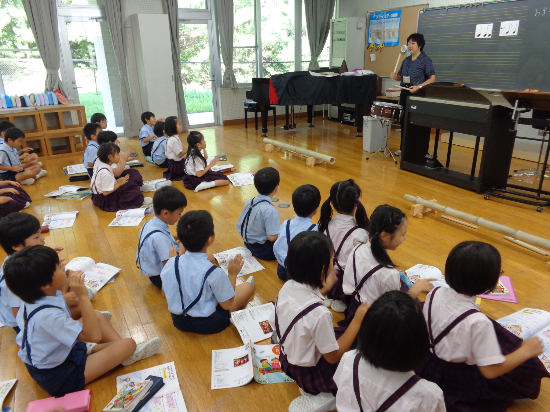 授業 280.お祭りのリズムをつくろう(2年生) 2018年8月27日 8月27日(月)、夏休みが明けた、2年生最初の授業は音楽の授業でした。「お祭りのリズムを作ろう」の単元で様々なリズム打ちに挑戦しました。カレッジの森で採ってきた竹を太鼓にし、バチで演奏をしました。また、「ドン・カ」のリズムを使ってオリジナルのリズムを組み合わせて発表もしました。元気いっぱいの子どもたちはお祭り気分で楽し...