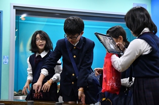 児童たちは常設展の水族展示や、企画展の化石林に特に興味を持っていました。後日、撮った写真とメモを基に、発表会を行う予定です。