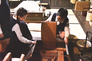 午前中、児童たちは班に分かれて館内全体を巡り、琵琶湖の成り立ちや生き物の様子、琵琶湖とともに生活してきた人々の暮らしについて学習しました。午後は班ごとに話し合ってテーマを決め、調べ学習をしました。班に1台タブレット端末を持って行き、気になる展示の写真を撮り、気づいたことをメモに取りました。