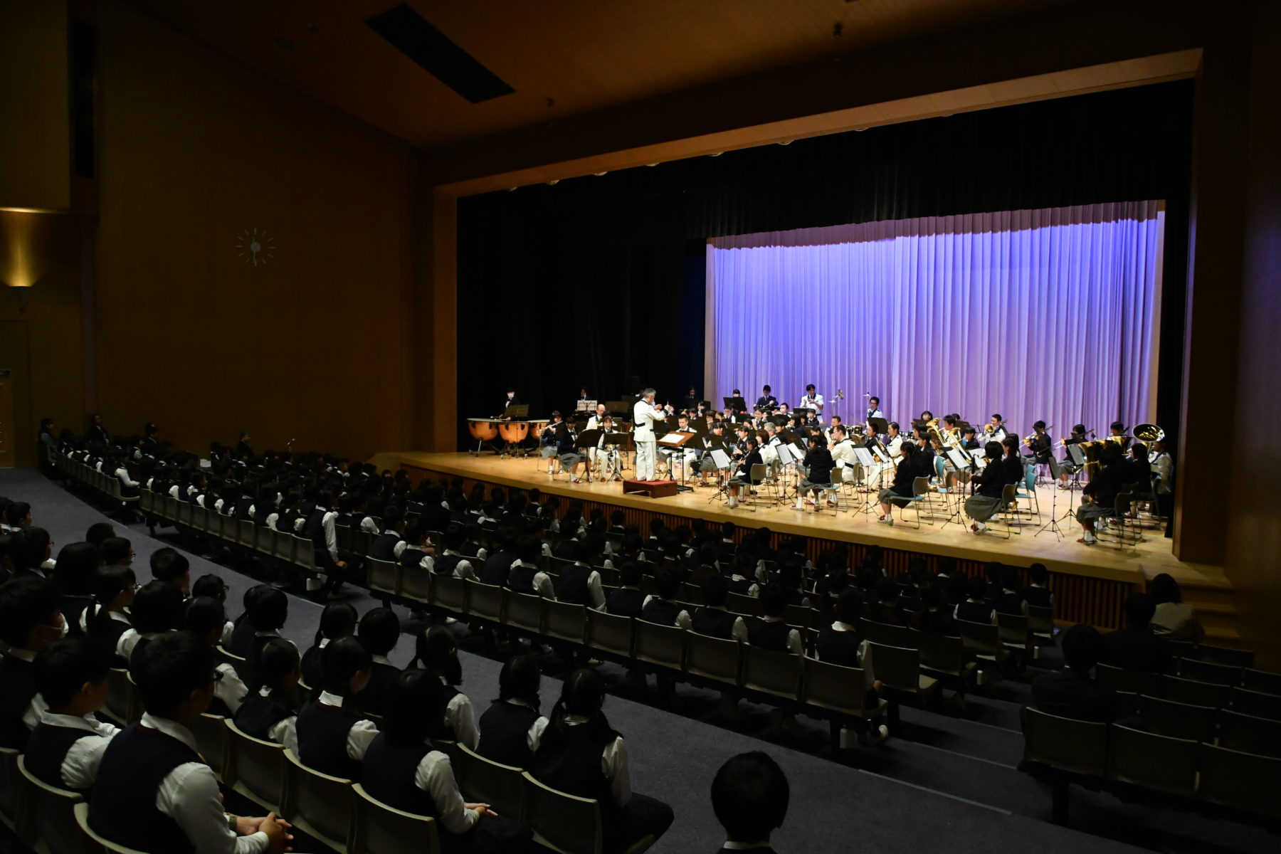 ![]() 中学部高等部ブラスバンド部との合同演奏 |