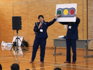 交通安全教室は低学年と高学年に分かれて体育館で実施しました。低学年は、信号機のルールや不審者対応などについて勉強しました。高学年は、交差点での安全確認や自転車のルールなどについて勉強しました。児童たちは真剣な眼差しで交通安全に関する話を聞き、しっかりと考える良い機会となりました。