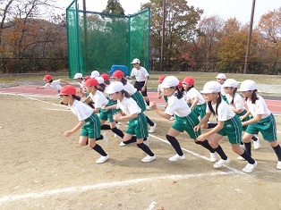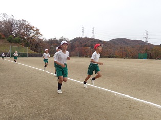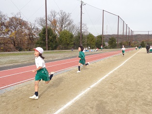 各学年、準備体操の後、1・2年生は800m、3・4年生は1200m、5・6年生は1600mを走りました。