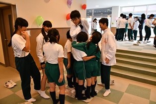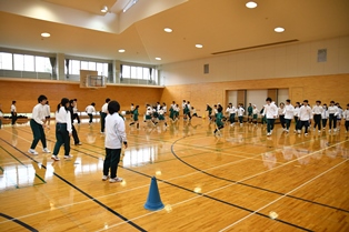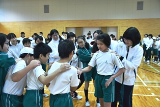 体育館では、じゃんけん列車、ドラキュラ鬼ごっこなどのゲームをしました。児童たちは楽しく体を動かし、中学生と打ち解けあうことができました。