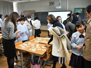 授業参観では、普段の授業の様子を保護者の方々に見ていただきました。中には、途中から親子でカルタ取りを行ったり、児童による学習発表の場を設けたりなど、各クラス様々、趣向を凝らした授業を行っていました。児童たちは、いつも以上に張り切って、学習に取り組んでいました。