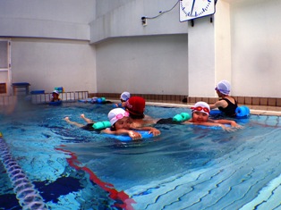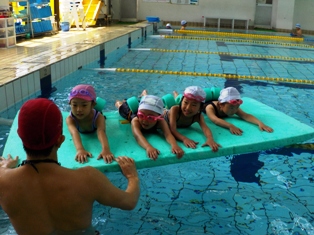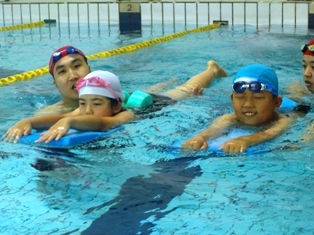 水泳教室のコーチから優しく丁寧に指導していただいたおかげで、児童たちは楽しみながら自分自身の泳力を向上することができました。「水泳実習で学んだことを活かして、夏休みに海や川で実際に泳ぎたいです。」などと感想を述べていました。