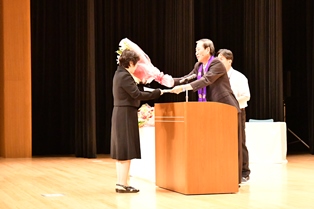 行事 350.永年勤続表彰 2019年6月11日 2019年6月27日 6月11日(火)の感謝祭の折に、永年勤続職員表彰式を実施しました。 本校に長きにわたって勤務されている先生方一人一人に、理事長から表彰状と花束が贈呈されました。児童たちからは盛大な拍手が贈られました。最後に表彰された先生方の代表からは理事長に謝辞が述べられました。 理事長から表彰① 理事長から表彰② 理事長から表彰③ 被表彰者から謝辞