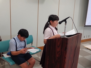 ![]() 親子行事 司会をする児童 |