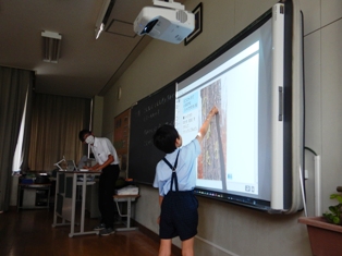 ![]() 親子行事 作品を写真に撮って電子黒板に投影 |