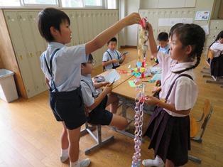 授業 703.図工「とんとん くぎうって」できあがり!(3年生) 3年生が取り組んでいた、図工「トントン どんどん くぎうって」の作品ができあがりました。 次々と木と釘を組み合わせ、様々な形を作り上げました...