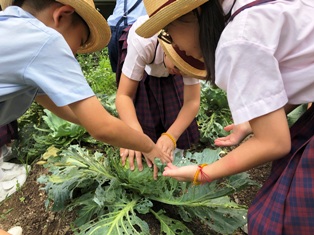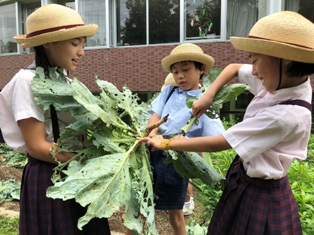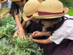 5月から育ててきたキャベツは、葉がきれいに丸まり、ずっしりとした大きな玉になりました。児童たちは、各家庭に持って帰って野菜炒めなどにして食べ、次の日にしっかりとキャベツの味がしたと感想を言っていました。
