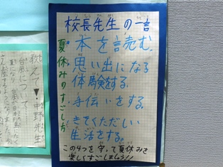 これから暑い日が続くでしょうが、この夏休みに児童の皆さんが、暑さに負けず元気に、そして有意義な時間を過ごしてくれることを願っています。