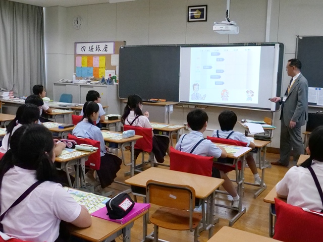 授業 364.租税教室(6年生) 2019年8月27日 8月27日(火)に6年生対象に租税教室を行いました。 税理士の藤原靖雄先生と谷実紀先生にお越しいただき、税金と自分たちの生活との関わりや、税金の種類、使い道などについて教わりました。 児童たちは、講義を真剣に聞き、講師の先生からの発問に積極的に挙手をして意欲的に学ぼうとしていました。 税理士の藤原靖雄先生 様々な税金の...