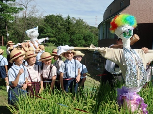 里山 368.かかし作り(4年生) 2019年8月29日 8月28日(水)、29日(木)の2日間でかかし作りをしました。 竹や新聞紙、古着などを使って、かかしを作りました。みんなで協力しないと持ち上がらないくらい大きなかかしができました。作ったかかしは、学内の田んぼに設置され、鳥などから稲穂を守っています。 どんなかかしを作るか相談 みんなで協力してかかしの組立 田んぼに設置...