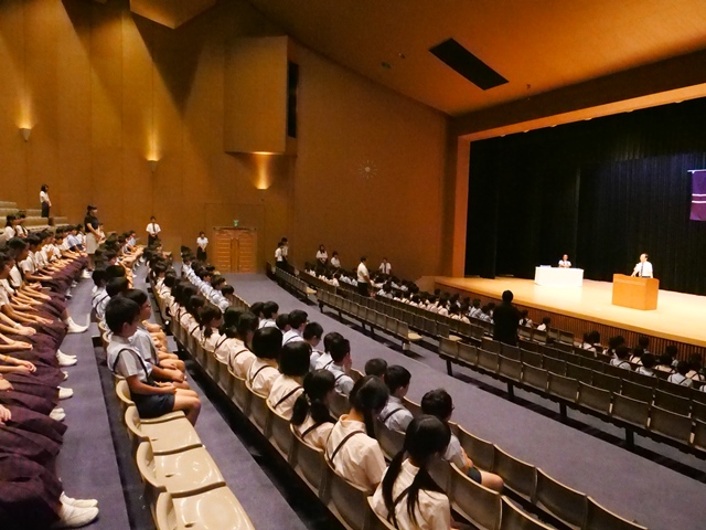 校長先生からは、「この2学期、自分なりの勉強方法をみつけること、優しい心で人に接すること、みんなが使う校舎をきれいにすること、の3つを意識して、学校生活を送りましょう。」という話がありました。