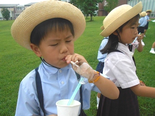 授業 369.シャボン玉遊び(1年生) 2019年8月29日 2019年9月20日 8月29日(木)に、1年生がシャボン玉遊びを行いました。 様々な大きさ、色々な形のシャボン玉を上手に作ることができました。友達にも自分が作ったシャボン玉を嬉しそうに披露していました。