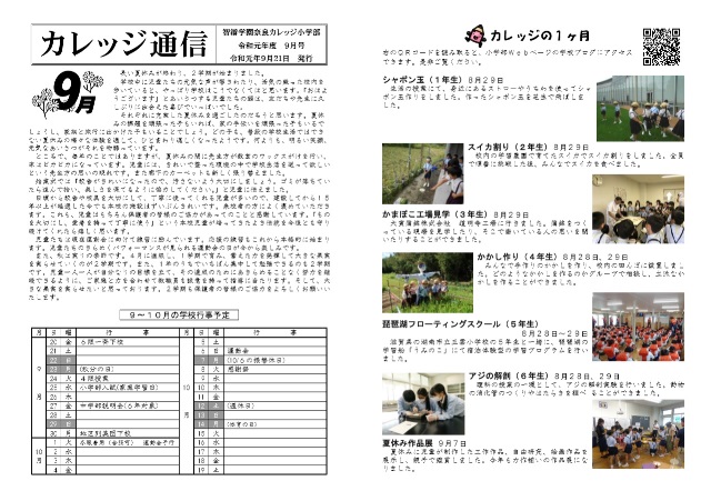 カレッジ通信 令和元年9月号が完成しましたので、掲載します。(下の画像をクリックすると、PDFを表示します。)...