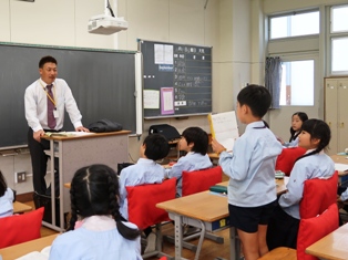 10月4日(金)に3年生の社会科「農家の仕事」の単元の一環として、学校近くの「天野ぶどう園」から天野茂雄様を特別講師としてお招きし、授業をしていただきました。