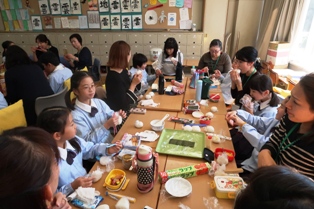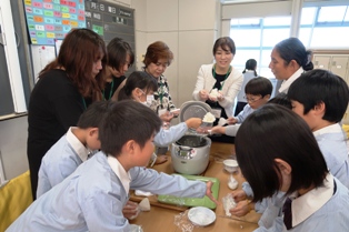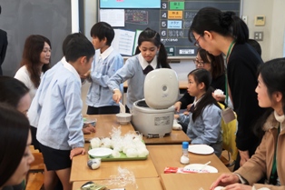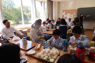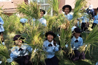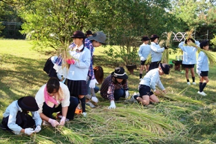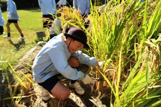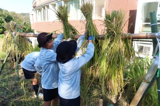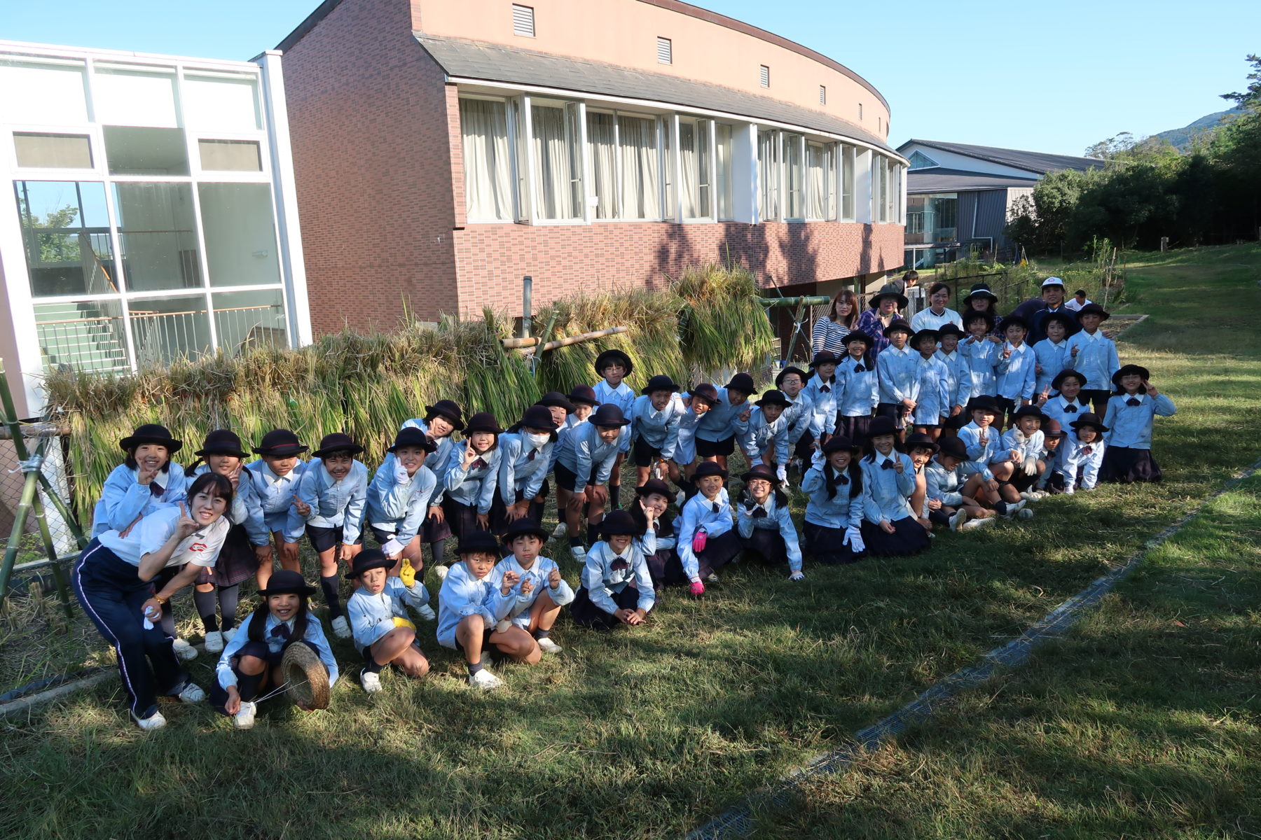春から育ててきた稲が立派に育ちました。児童たちは、鎌を上手に使い手際よく刈り取って、たくさんのお米を収獲することができました。今年も11月の保護者会で親子協力しておにぎり作りをしました。児童たちから「自分たちの手で育てたお米はおいしい」との声も聞こえ、とても嬉しそうに食べていました。
