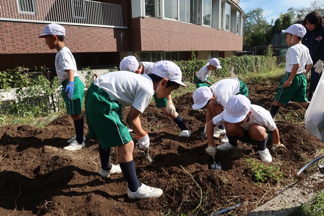 11月7日(木)の低学年保護者会で、1年生が芋掘りをしました。